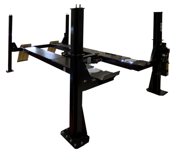 Los ascensores delanteros abiertos de 14K y cuatro postes le brindan 14,000 libras de capacidad de trabajo pesado en un paquete compacto sin necesidad de múltiples elevadores. Ya sea que se trate de un micro automóvil o una camioneta de servicio pesado, el elevador de alineación de cuatro postes 14K tiene cuatro capacidades de alineación de ruedas que cubren una amplia gama de requisitos del vehículo. Las placas deslizantes traseras de 90 ", líderes en la industria, eliminan el tiempo de reposicionamiento de las placas giratorias delanteras para acomodar vehículos más cortos y más largos durante los ajustes de alineación de las cuatro ruedas.