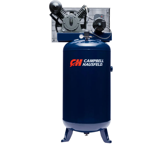 El compresor de aire vertical Campbell Hausfeld de 80 galones (HS5180) es ideal para una tienda pequeña, entusiasta de la automoción o usuario serio de bricolaje. Este compresor de aire funciona con una corriente doméstica de 230 V y ejecutará herramientas de aire de alta demanda, como lijadoras de aire y amoladoras de aire diariamente. La bomba de dos etapas para uso comercial, lubricada con aceite, de hierro fundido, está diseñada para proporcionar hasta 12,000 horas de vida útil prolongada al tiempo que brinda 14 CFM de aire a 90 PSI. El duradero tanque de código ASME de 80 galones es un diseño vertical para ahorrar espacio en la tienda o en el garaje.