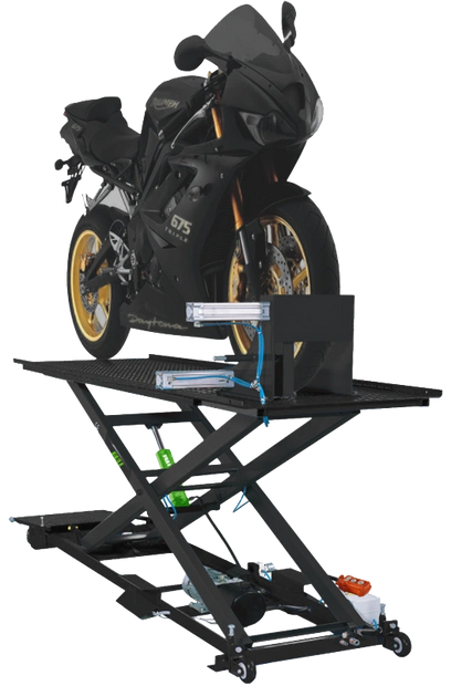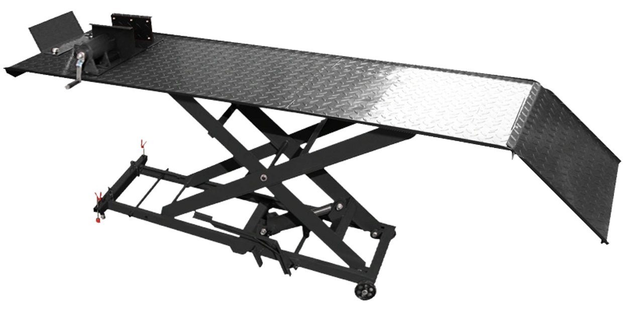 Con un peso de 1000 libras. capacidad de elevación, la plataforma de elevación de motocicleta PL-MT05 brinda facilidad profesional a cualquier trabajo de servicio de motocicleta o ATV. Este elevador de motocicleta de bajo perfil PL-MT05 está diseñado para ser resistente y duradero al mismo tiempo que brinda servicio y reparaciones a su motocicleta con la máxima adaptabilidad que usted siempre ha necesitado.